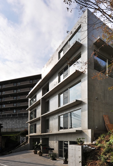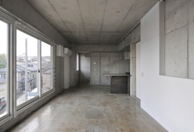 構造はRC造、各住戸は打ち放しの壁と大きな開口部とで構成された空間です。
