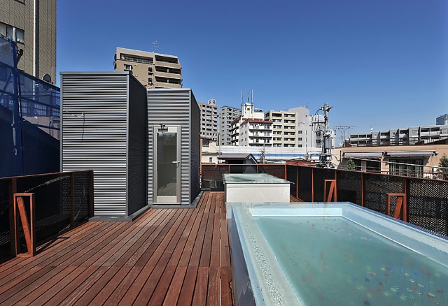 都心の空に広がる屋上デッキの家